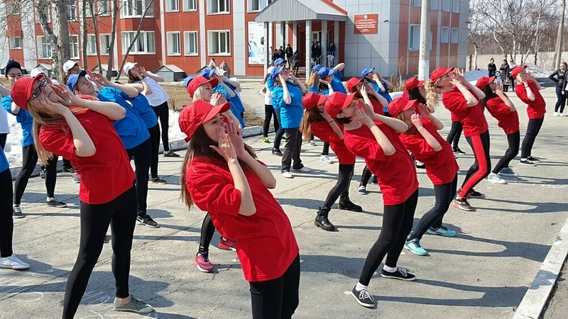 Студенты Сахалинского базового медицинского колледжа устроили сегодня массовый танец с элементами зарядки в областном центре.