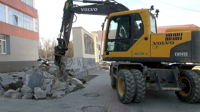 Сегодня в рамках ремонтных работ начался демонтаж части фундамента стелы, которая установлена с правой стороны от здания администрации Южно-Сахалинска.