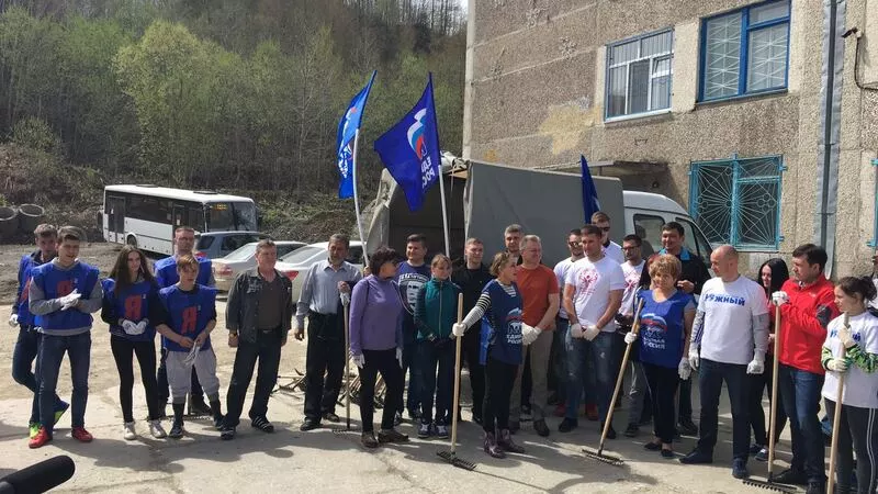 Депутаты Городской думы Южно-Сахалинска и островные молодогвардейцы сегодня привели в порядок часть территории в селе Синегорск.