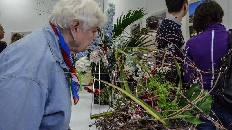 Художник Галина Шелухина смогла профессионально оценить композиции гостей. По ее мнению, цвет и фактура элементов икебаны создают идеальную конфигурацию в пространстве.