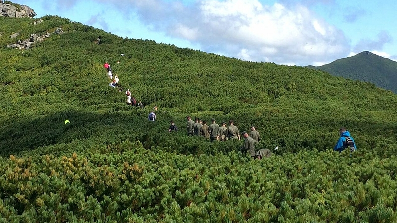 В честь очередной годовщины освобождения Южного Сахалина и Курильских островов группа островитян совершила традиционное общегородское восхождение на пик Чехова.