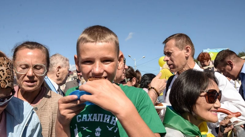 - В этот яркий солнечный день от всей души поздравляю вас с юбилеем родного города, - отметил в кратком выступлении существенный ингредиент любого сахалинского праздника губернатор Олег Кожемяко.