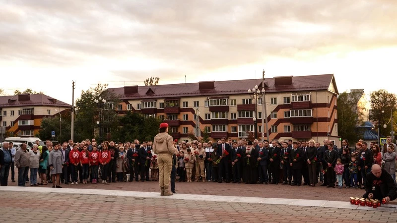 После короткого митинга к Вечному огню легли цветы и зажглись десятки лампадок.