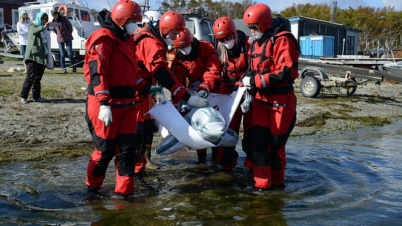 Обучение для волонтёров организовал клуб «Бумеранг» в рамках проекта «Сахалин: Человек и Море» при поддержке компании «Сахалин Энерджи». Партнёры проекта – Совет по морским млекопитающим (Москва) и поисково-спасательный отряд им. В. А. Полякова МЧС РФ – также активно участвовали в подготовке общественного отряда спасателей, в который входят ветеринары, спасатели и активные сахалинцы. Всего в группе более 30 участников.