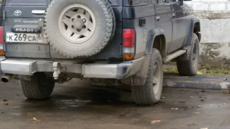 На первом снимке запечатлен «Прадо», которого припарковали поперек дороги, перегородив при этом тротуар. При этом владельцу джипа безразлично, что он тем самым мешает не только пешеходам, но и другим водителям.