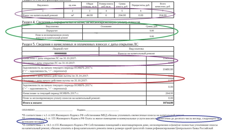 Теперь в квитанции указывается не только сумма к оплате за месяц, но и сколько всего было начислено за капитальный ремонт с момента открытия лицевого счета за конкретную квартиру. В этом же документе будет отражена сумма, которая оплачивается в рамках предоставленной льготы.