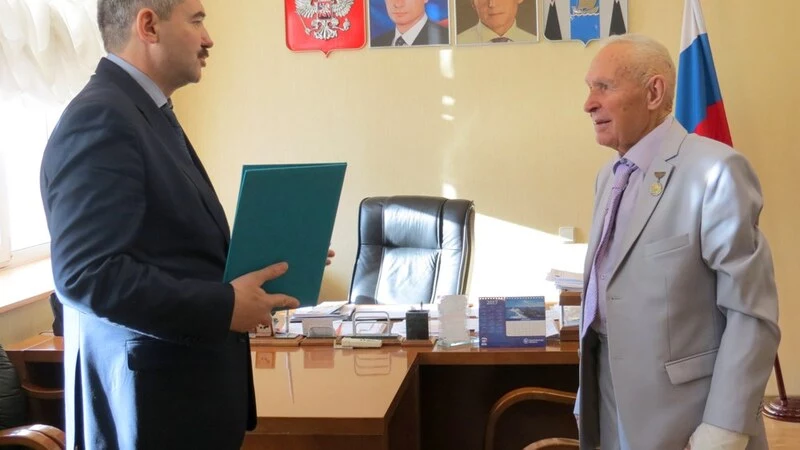 Поздравление и подарок ветерану отрасли передал и депутат Госдумы Георгий Карлов.