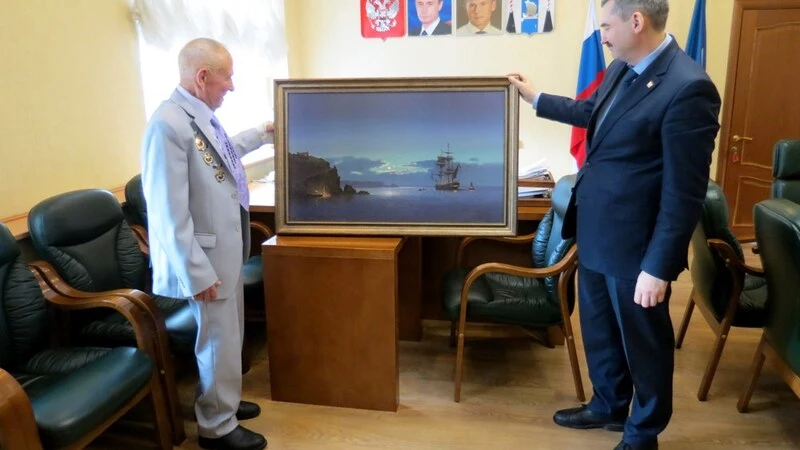Юбиляру вручили памятный адрес губернатора и ценные подарки, в числе которых особый – большая картина с сахалинскими пейзажами от коллектива компании «Востокуголь», где многие годы трудился Гоголин.