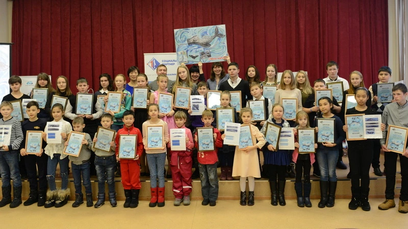 Для того чтобы дети смогли продолжить изучение особенностей охото-корейской популяции серых китов, каждый вместе с призом получил научный сборник о морских млекопитающих, выпущенный компанией «Эксон».