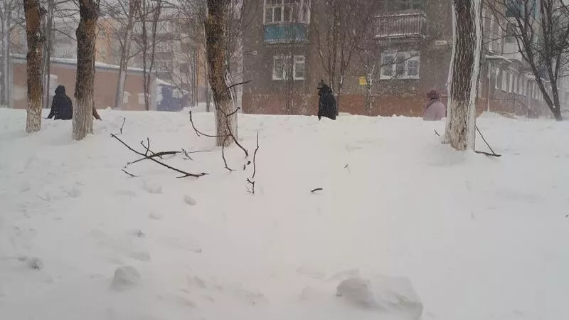 По ее словам, город оказался в снежном плену из-за очередного циклона. Сугробы достигли уровня окон, ими же завалены тротуары, поэтому люди вынуждены двигаться по дорогам. Впрочем, последние также не страдают от отсутствия снега. Их не расчищают: вероятно, по этой причине не функционирует городской транспорт. Наш автор предполагает, что из-за отсутствия автобусов в райцентре не чистят и остановочные пункты.