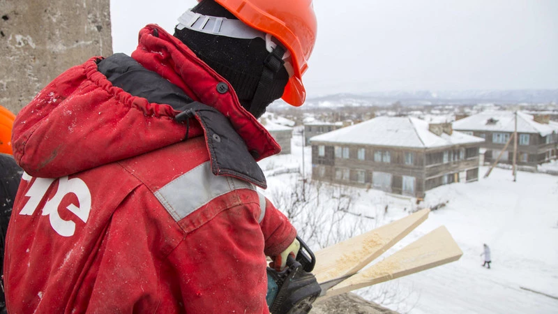 Работы по ликвидации последствий стихии продолжались в течение новогодних каникул, а также в последующие дни. Ведут их специально сформированные бригады строителей – в общей сложности около 100 человек. По поручению Олега Кожемяко координирует эту деятельность министр ЖКХ области Дмитрий Зайцев. Уже практически завершен разбор поврежденных элементов зданий. Составлены графики восстановления крыш, выбраны подрядные организации, которые приступили к работам. Например, на поликлинике в Шахтерске ведется подготовка к монтажу нового железобетонного основания для крепления стропильной решетки. А в Углегорске уже восстановлена целостность двух кровель многоквартирных домов.