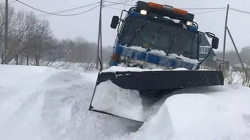 Минувший циклон намел солидные сугробы в Анивском районе: казалось, разгребать их даже на основных дорогах придется не один день.