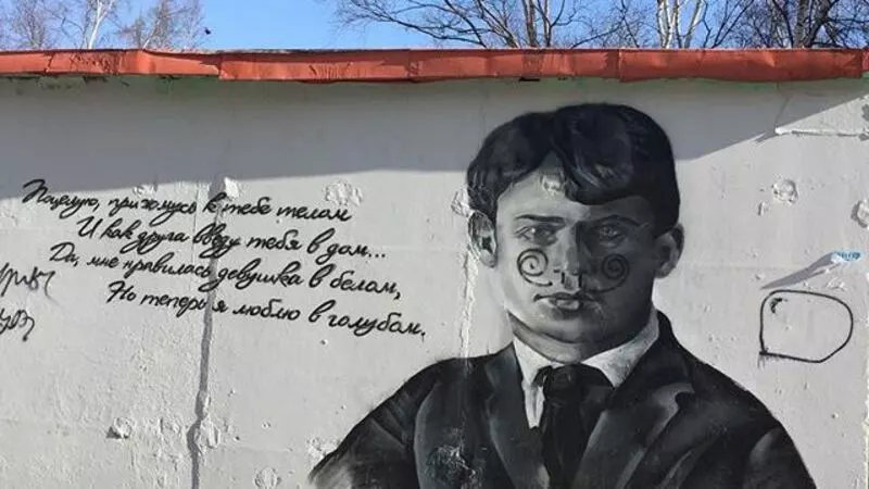 Портрет Сергея Есенина на одной из улиц Южно-Сахалинска пострадал. Неизвестные пририсовали «московскому озорному гуляке» усы.
