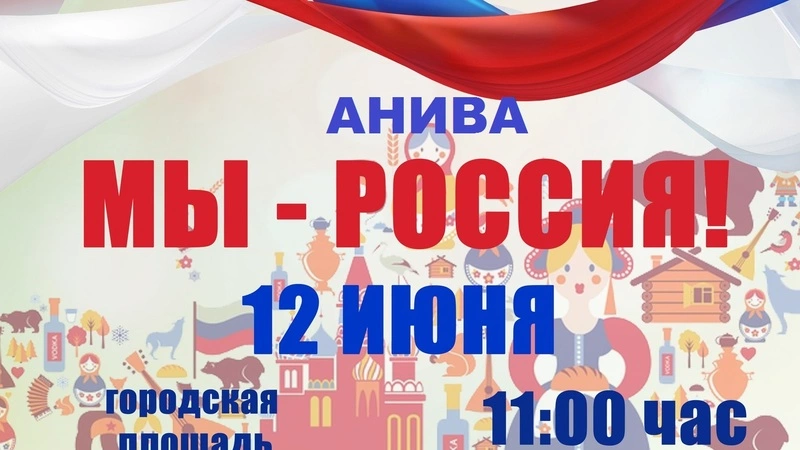 День России 12 мая отметят во всех муниципалитетах области. Праздничная программа в Аниве стартует в 11:00 шествием «Многоликая Россия». Затем горожан ждут концерт «Мы все твои, Россия, дети», детская игровая программа и выставка-продажа национальных блюд.
