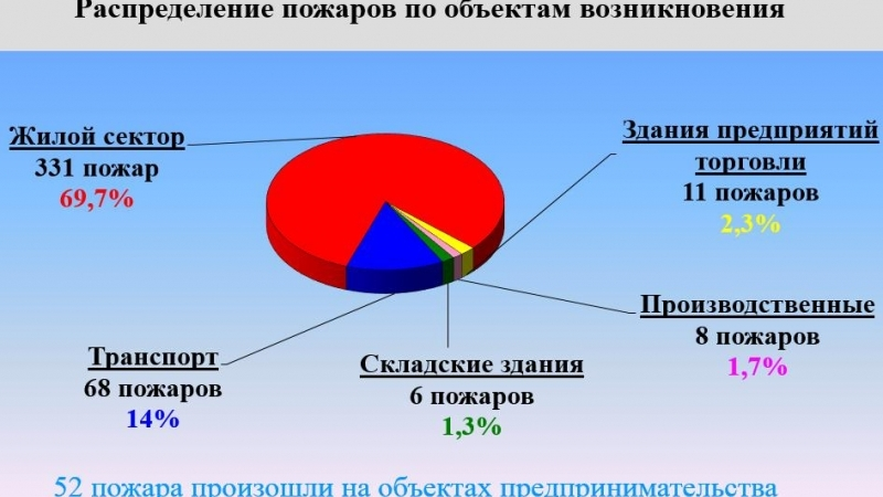 Растет и число пожаров на других объектах. На 20 процентов чаще пожарным приходилось тушить склады – было шесть случаев (плюс один к статистике прошлого года). В три раза чаще огнеборцы выезжали на места открытого хранения горючих веществ или на сельхозугодья. В три раза больше было возгораний на сооружениях и в помещениях для культурно-досуговой деятельности. Вполовину (с двух до четырех случаев) вырос показатель по пожарам в помещениях для временного проживания людей.