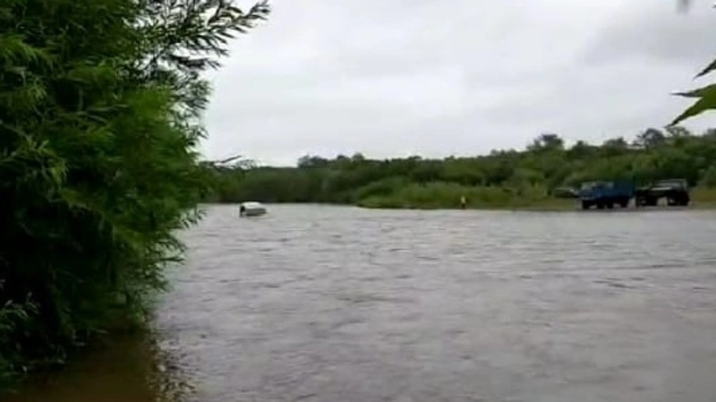 Видео, на котором запечатлен трагический момент переправы микроавтобуса Toyota Hiace, попало в сахалинские социальные сети накануне. На кадрах видно, как грузовичок пытался перетянуть автомобиль на другой берег с помощью троса. Но на полпути связка оборвалась. Машина полностью ушла под воду и поплыла вниз по течению. Находящиеся на берегу люди поспешили на помощь утопающему. Они сумели достать из реки автобус, но водителя в нем не оказалось.