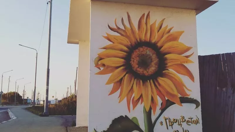 — Иногда создаю что-то интересное не по просьбе, а по собственному желанию. Решил разрисовать хмурую остановку в селе Стародубском — разрисовал. На стене изобразил большой желтый подсолнух. Почему подсолнух? Просто. Нравятся цветы. У меня и фамилия такая, — с улыбкой добавил художник.