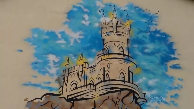 Сельчане сами придумали несколько вариантов картинки. По итогам голосования победу одержал эскиз «Ласточкино гнездо». Идея такая — раз дом находится на улице Крымской, значит, и тематика должна быть крымской. Жильцы представили художнику макет с изображением одного из самых известных памятников архитектуры российского полуострова.