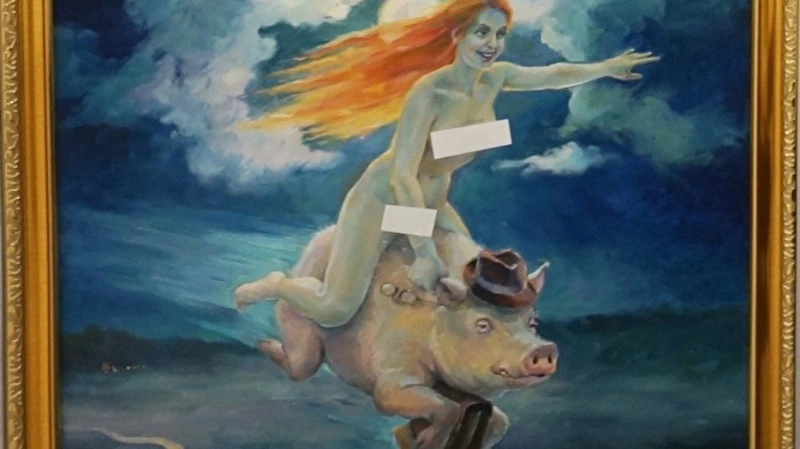 Один из художников, который участвует в выставках более 20 лет, заявил, что сталкивается с таким в первый раз. Одной из «оцензуренных» стала картина по мотивам «Мастера и Маргариты», которая изображает главную героиню, летящую нагой верхом на борове.