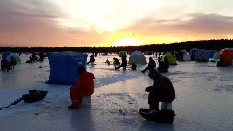 По словам южно-сахалинского рыбака, сегодня на озере собралось не менее 500 человек, многие прятались от холода в палатках.
