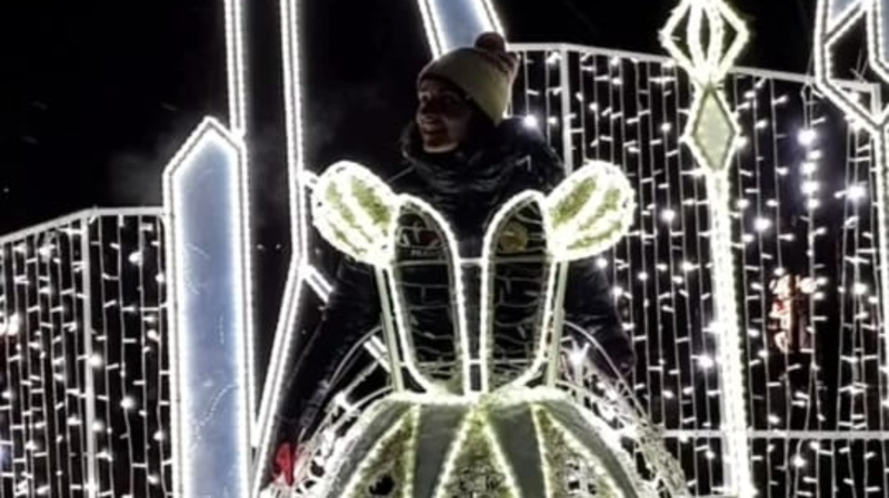 И француженка Мари Боше в День святого Валентина накануне оценила световое парковое оформление и даже «примерила» на себя светящееся пышное платье.