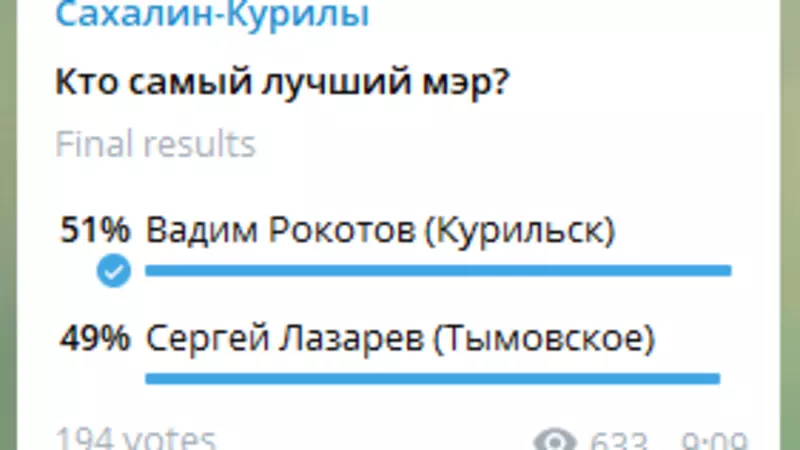 В финале его соперником стал мэр Курильска Вадим Рокотов, чье преимущество над оппонентом из Корсакова составило всего 4 процента. Победителя поддержали подписчики других сахалинских Telegram-каналов, которые выпустили несколько агитационных публикаций. Наши коллеги также заметили, что у Сергея Лазарева сформировалась отличная группа поддержки.