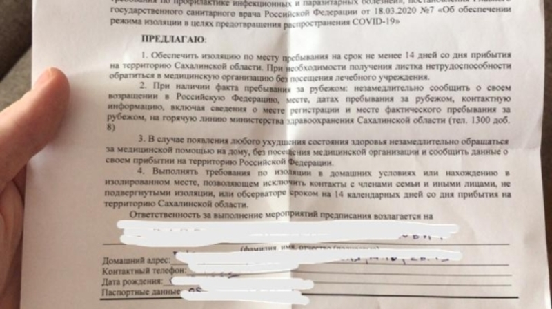 В последующие дни врачи интересовались о моем здоровье иногда по три-четыре раза за сутки. Повторные анализы приехали брать только в субботу, как раз в тот день, когда узнали про больного коронавирусом с моего рейса. Процедура точно такая же, как в аэропорту, но в этот раз ей подверглась и моя девушка. Она была не в восторге, честно говоря. Позже пришел очень важный мужчина (не запомнил, из какой службы) и дал предписание и анкету девушке, чтобы и она сидела дома. 15 апреля к нам снова приехали за анализами, в этот раз брали даже кровь.