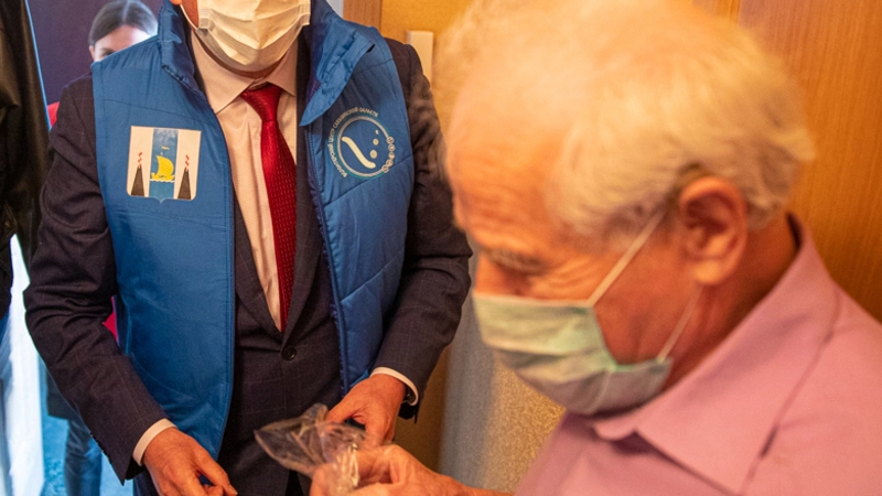 Также от имени губернатора поздравление получил Петр Кожемякин. Пасхальные наборы островитянину вручили волонтеры-медики.