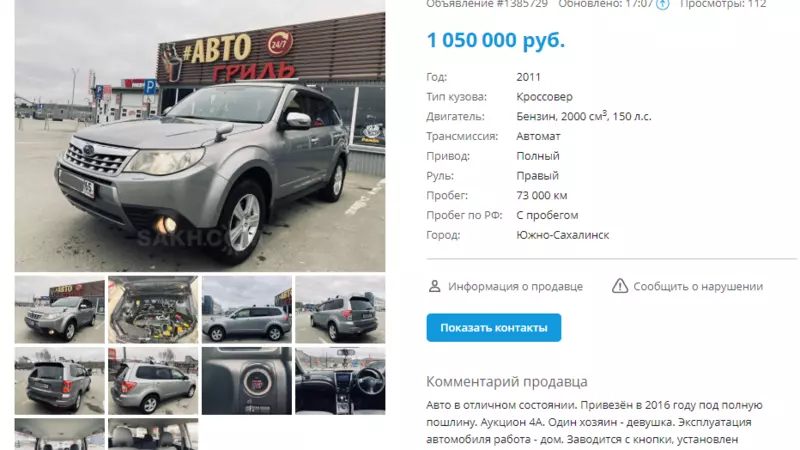 Денег, заработанных за апрель, ворам и грабителям Сахалина почти хватит на автомобиль Subaru Forester 2011 года выпуска. Такой кроссовер выставлен на продажу на одном из популярных ресурсов островного региона, его стоимость составляет 1 050 000 рублей. Злоумышленникам придется добавить 42 тысячи на комплект хороших шин.