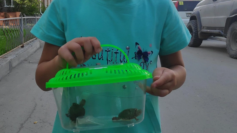 И тут в дело снова вмешалось чудо. Идя с работы, Илья Шамазов случайно увидел возле рынка студента и коробочку возле него. В ней плескались маленькие черепашата — их было много. Двоих он забрал. Тут уже никак не отвертеться, пришлось звонить маме девочки.