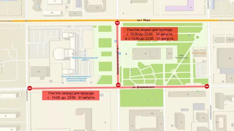 С 19:00 до 23:00 31 августа будет закрыт для проезда участок ул. Дзержинского от ул. Хабаровской до ул. Антона Буюклы.