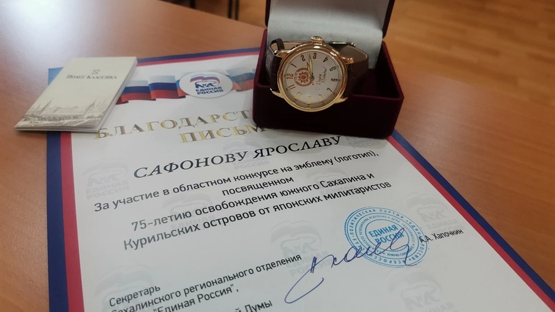 Корреспондент РИА «Сахалин-Курилы» Ярослав Сафонов победил в конкурсе на эмблему, посвященную 75-летию окончания Второй мировой войны и освобождения Южного Сахалина и Курильских островов от японских милитаристов. 12 ноября ему торжественно вручили благодарность и подарок.