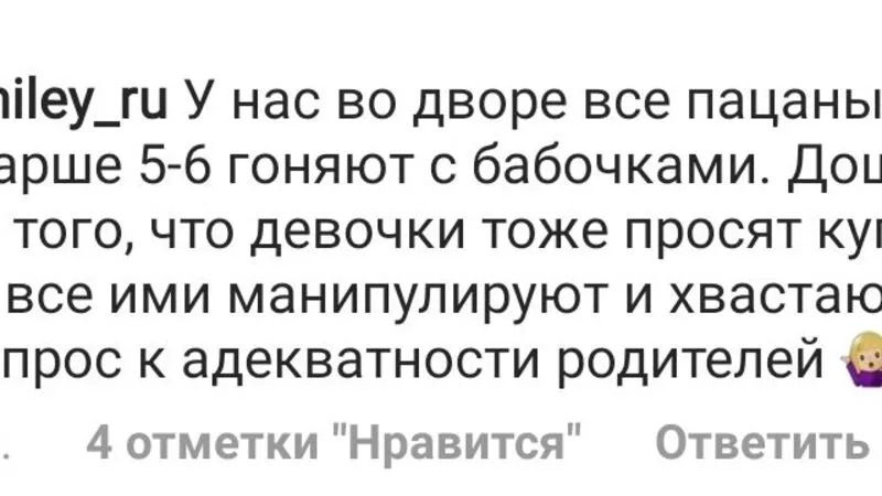 — Мой ребенок назвал семь имен — детям по 6-9 лет. Они крутят, вертят ножи. Говорит, что они не заточены. Заточен только у одного, но его имя не раскрывает, он, мол, старше всех. Я сама видела такую бабочку у девятилетнего ребенка. Они собирались компанией куда-то, а тот стоял с раскрытым ножом и показывал его другим. Семьи у всех благополучные, — поделилась горожанка.