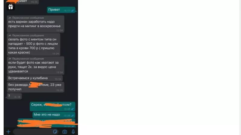 Скриншот диалога опубликовал островитянин Алексей Иванов в группе «Сахалин-моя родина» социальной сети «Одноклассники». В пересланных сообщениях говорится, что есть легкий вариант подзаработать, для этого нужно прийти на несанкционированный митинг в Южно-Сахалинске в воскресенье и включить все свои актерские способности.