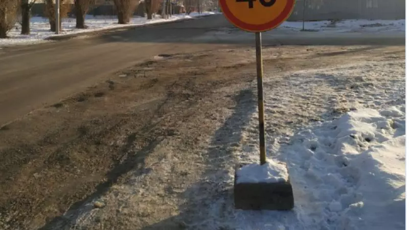 В Южно-Сахалинске перед ямой на дороге ГИБДД выставило предупреждающий знак. Это означает, что островитяне будут попадать в нее на скорости 40 километров в час.