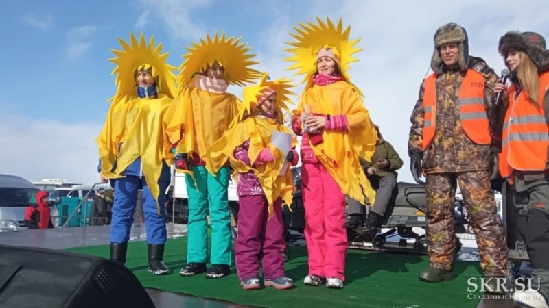 На фестиваль прилетели даже команды с материка. Многие готовились основательно — покупали не только снасти, но и костюмы. На льду в этот раз сахалинцы встретили двух женщин в образе коровок. Соревнования раззадорили островитян: некоторые успели похвастаться, что добывают по рыбке в минуту: клев отличный. Рыбаки боролись за главный приз — снегоход. И он нашел своего нового владельца.