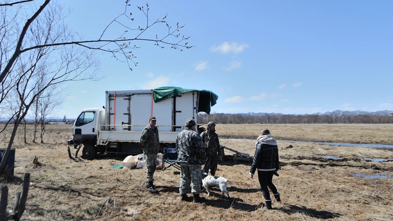 В этом году появились нововведения в охоте на пернатых - с 15 апреля на селезней и вальдшнепов выходят те, у кого в арсенале есть живая подсадная утка. Среди первых за несколько дней место присмотрел южносахалинец Александр Антонов. Мужчина в компании со спаниелем Тайсоном уже два дня живут в трейлере, вечером к ним присоединятся сын и друзья.