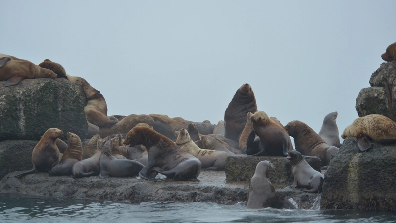 Волонтеры, к которым присоединились в этом году новички, осмотрели лежбище морских львов с дрона, а затем подплыли к ним на лодке. Нескольким животным понадобилась помощь добровольцев.