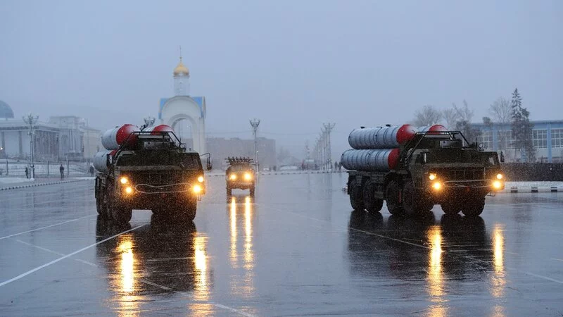 Зенитно-ракетный комплекс ПУ ЗРС С-400 «ТРИУМФ». Играет ключевую роль в современной концепции Вооруженных сил России, в том числе обеспечивает защиту на Сахалине. Войска противника, попадающие в радиус действия систем, будут гарантированно уничтожены. «Триумф» способен поразить любое современное и перспективное средство воздушно-космического нападения в широком диапазоне скоростей и высот.