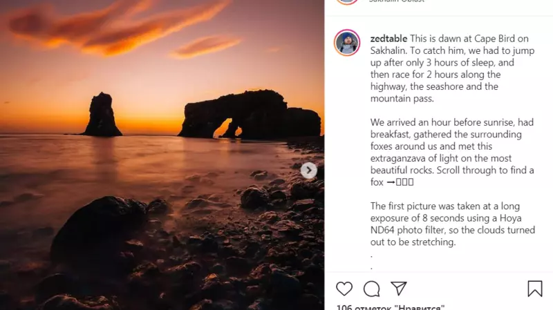 Уникальные кадры с Сахалина и Курил, сделанные известным российским тревел-блогером Дмитрием Куликовым, выставил на своей странице в Instagram некий Бобби Себастьян из Новой Зеландии, утверждающий, что он тоже фотограф. Иностранец даже не стал менять текст к снимкам, выложенным в соцсети у путешественника.