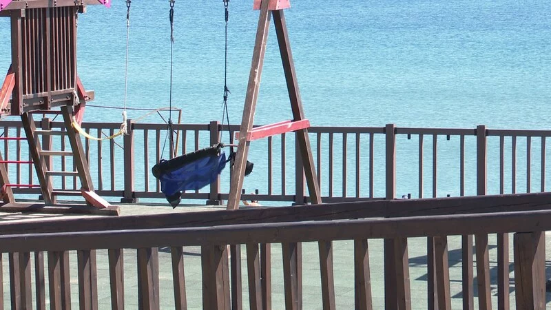 Набережную перекрыли в начале недели, но уже на следующий день некоторые ограждения сломали. Доски лежат гвоздями вверх, на том же месте, где их заколотили, Теперь, чтобы попасть на детскую площадку – достаточно просто перешагнуть через сломанную балку.