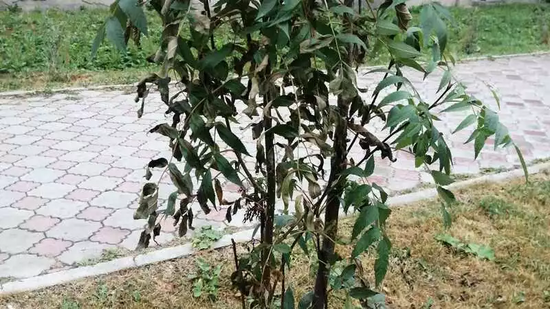 После затянувшейся жары жители Южно-Сахалинска стали замечать во дворах и скверах города погибшие деревья. Высокая температура и отсутствие влаги привели к тому, что многие растения высохли.