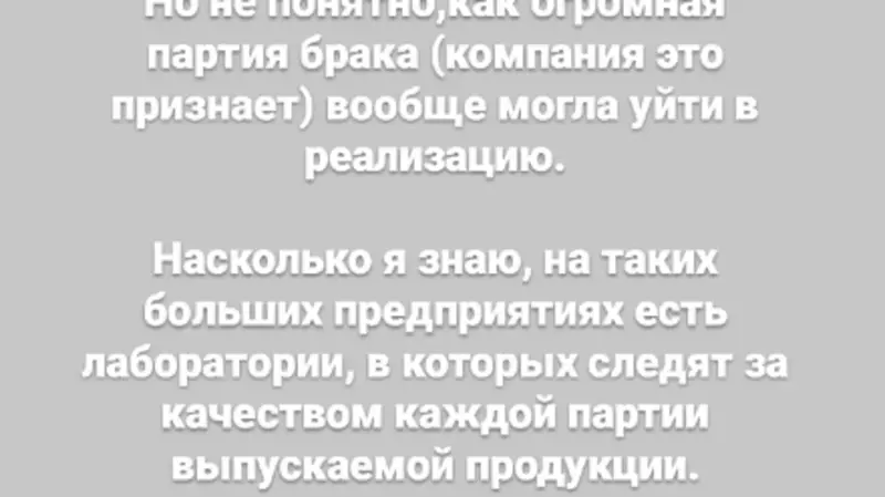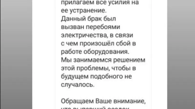 «Данный брак был вызван перебоями с электричеством, в связи с чем произошел сбой в работе оборудования. Мы занимаемся решением этой проблемы, чтобы в будущем подобного не случалось», - было написано в ответе производителя.