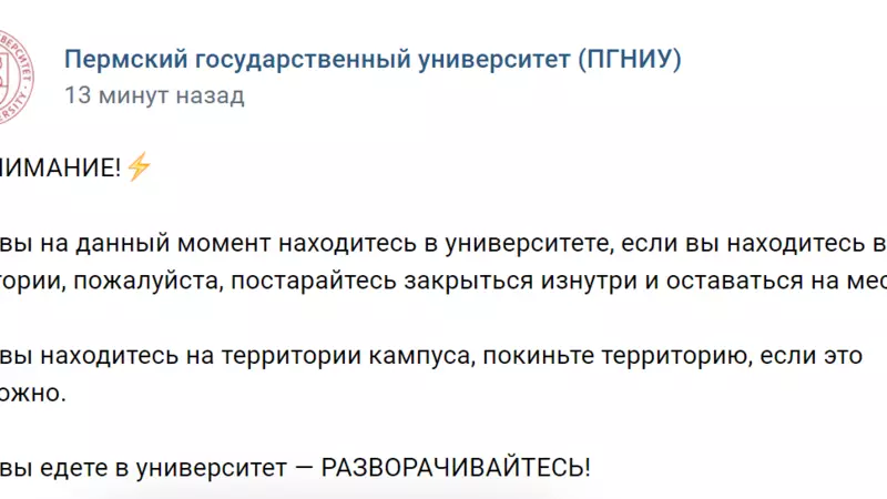 «Если вы на данный момент находитесь в университете, если вы находитесь в аудитории, пожалуйста, постарайтесь закрыться изнутри и оставаться на месте. Если вы находитесь на территории кампуса, покиньте территорию, если это возможно. Если вы едете в университет — РАЗВОРАЧИВАЙТЕСЬ!», - пишут в социальной сети вуза.