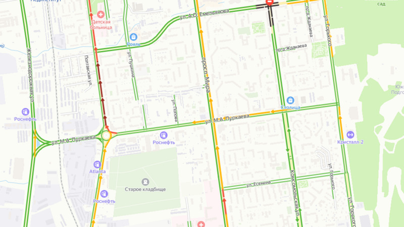 Согласно сервису «Яндекс.Пробки», на момент публикации новости на дорогах областного центра до сих пор наблюдаются плотные заторы. Водители все еще стоят на улице Ленина (от стелы до улицы Пограничной) и на проспекте Мира.