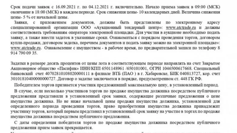 В документации указывается, что заявки на аукцион принимаются с 16 сентября по 4 декабря 2021 года. Снижение цены объекта допустимо в 5 процентов от указанной в объявлении суммы. Победителем будет признан тот покупатель, кто укажет в ходе торгов максимальную цену за недострой.