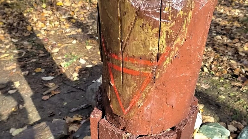 «Видно, что свежая деревяшка стоит, даже лак еще не потускнел. Конкретно не знаю, что за идол. Но у него вымазан рот. Еще на нем нарисована какая-то руна», — отметила Анна.