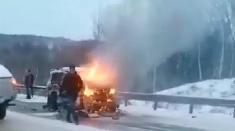 Жесткое ДТП произошло утром 13 марта на корсаковской трассе, возле села Мицулевка. Молодая женщина, которая двигалась на джипе Toyota Land Cruiser Prado, не справилась с управлением и вылетела на встречную полосу, где лоб в лоб столкнулась с большегрузом Scania. Сахалинка не успела обогнать спецтехнику из-за гололеда, поэтому и врезалась в нее на высокой скорости. Очевидцы происшествия говорили, что удар был ужасной силы: иномарка сначала крутилась по дороге, а потом вспыхнула.