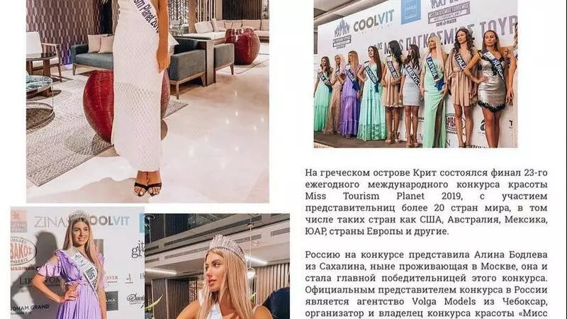 «Один из самых интересных конкурсов красоты, в которых я когда-либо принимала участие, это «Краса России». Он в принципе по уровню считается достаточно топовым конкурсом, и побывать на таком для меня было достойно. Подготовка была очень серьезная, моментами было тяжело, каждый день приходилось вставать в 7:00, правильно питаться, заниматься спортом, также мы готовили творческие номера. Были различные психологические тренинги, проработки, мы даже стояли на гвоздях. Я получила огромное удовольствие от участия в таком конкурсе, в особенности потому, что представляла Сахалин. Сахалин я обожаю и в ближайшем будущем планирую приехать на этот остров, потому что с ним связано очень много положительных впечатлений, эмоций. Там я училась в институте, работала. Училась я на экономиста, даже работала в рыбокомбинате «Островной» специалистом по инвестициям, был такой у меня опыт. И, я считаю, в Сахалинской области есть очень много красивых мест. Сахалин — это место силы», — поделилась с РИА Алина Бодлева.