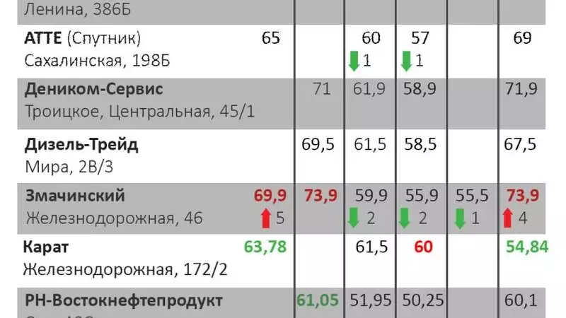 Тем временем дизельное топливо снова дорожает в Южно-Сахалинске. На автозаправочной станции ДТ выросло в цене на 1,5 рубля, а на «Змачинском» — на четыре рубля.